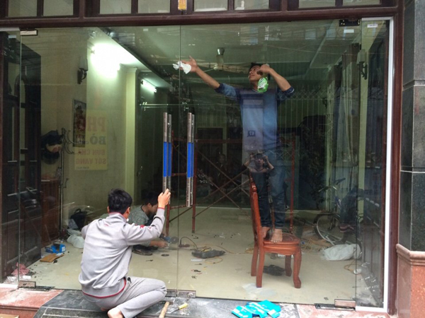 - Trường hợp xử lý tại quận Cầu Giấy (Hà Nội): Một khách hàng của Chúng tôi từng thuê đội thợ giá rẻ thi công cửa kính cường lực cho quán cà phê. Do sử dụng bản lề nhái và kính cường lực 12mm quá nặng, cửa đã bị xệ và quẹt xuống sàn chỉ sau 3 tháng.